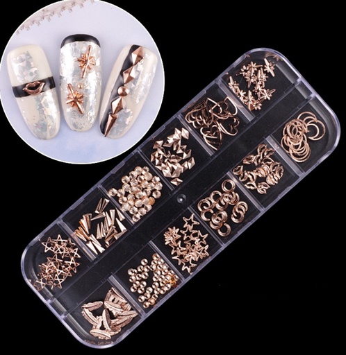 Aplique para Uñas de Metal Rosa-Dorado con 12 modelos