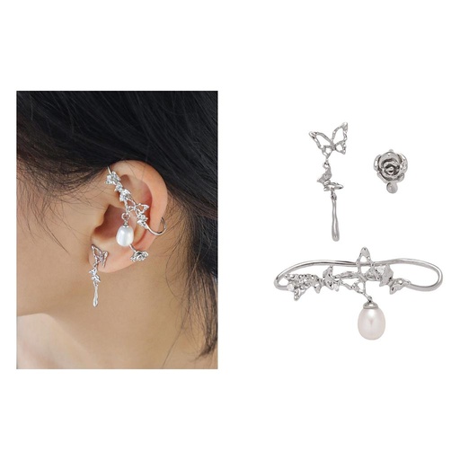 Aro/Colgante Plateado con Perlita 3pcs