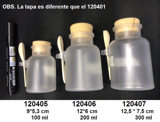 Frasco Sellado con Tapa Madera y Cucharita Redondo 200ml