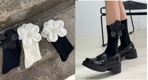Medias 1/2Pantorilla con Flor Grande y Perlitas