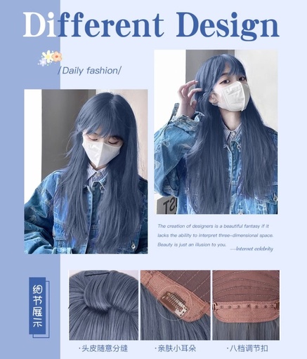 Peluca Celeste Liso con Flequillo 60cm