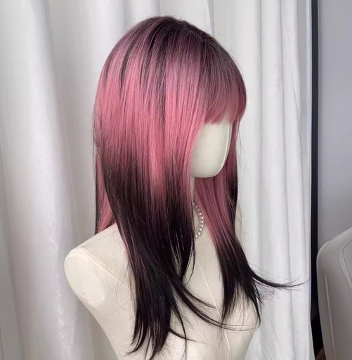 Peluca Media Larga con Mecha Rosada+Negro