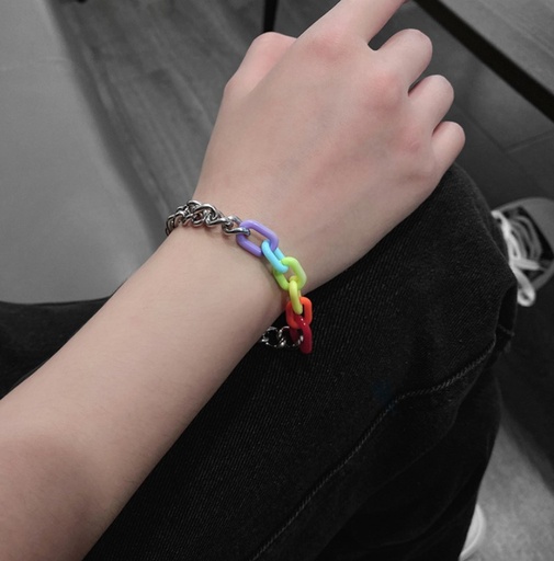 Pulsera Cadena de Acero y Accesorio color Arco Iris