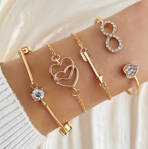 Pulsera Dorada con Corazón 4pcs