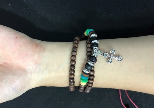 Pulsera Pelotitas de Madera con Cuz